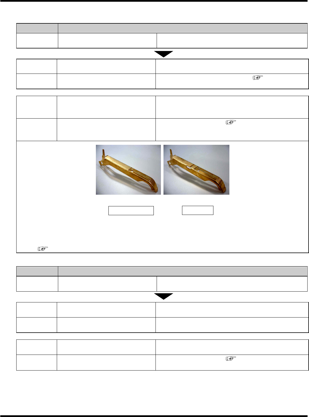 I ntelligent T ape Feeder 操作手册 7.1 关于故障 Page 7-22 B) 附带分离狭缝的进给间距变更板的安装 1. 安装附带分离狭缝的进给间距变更板。 2. 安装编带导轨。 3. 拧紧固定螺钉。 INT F- C-O MB07- A01- 00 IN T F- 096P IN T F- 097P IN T F- 098P