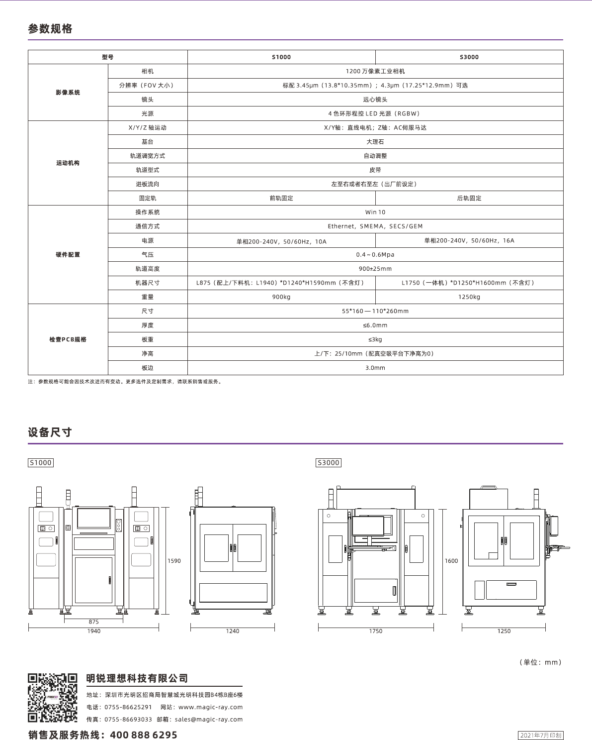S 10 0 0 / S 3 0 0 0 半 导体 自 动 光 学 检 查 机