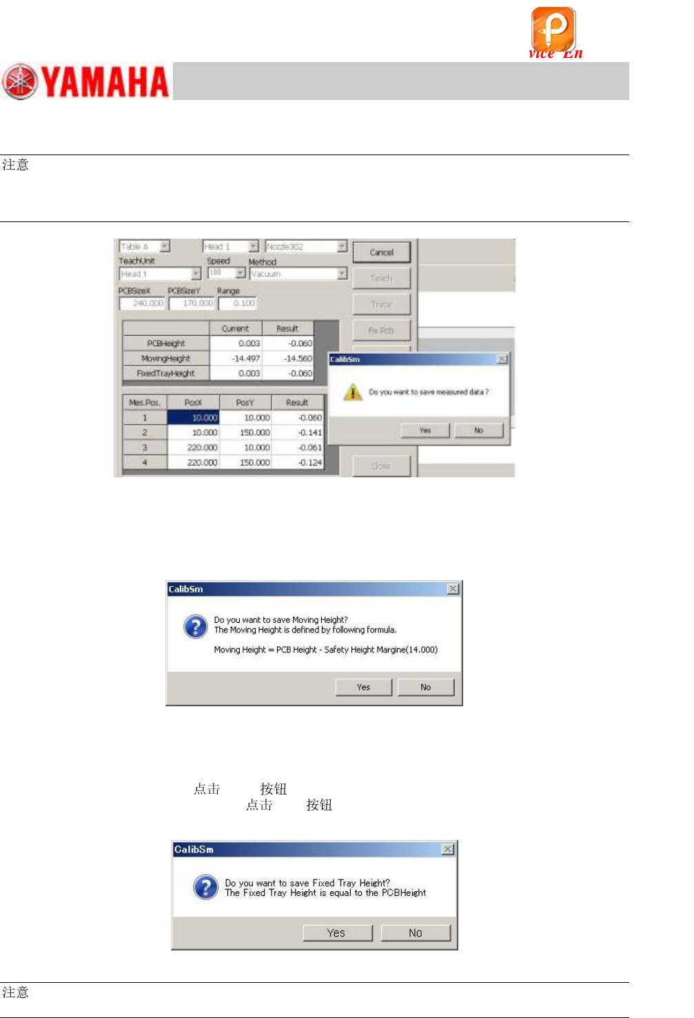 After saving the “PCB Height” data, the message appears asking you to save the “Moving Height”