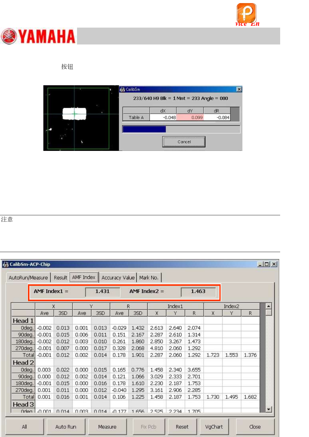If the “AMF Index 1” value is 1.0 or above, it indicates that the mounting accuracy meets the