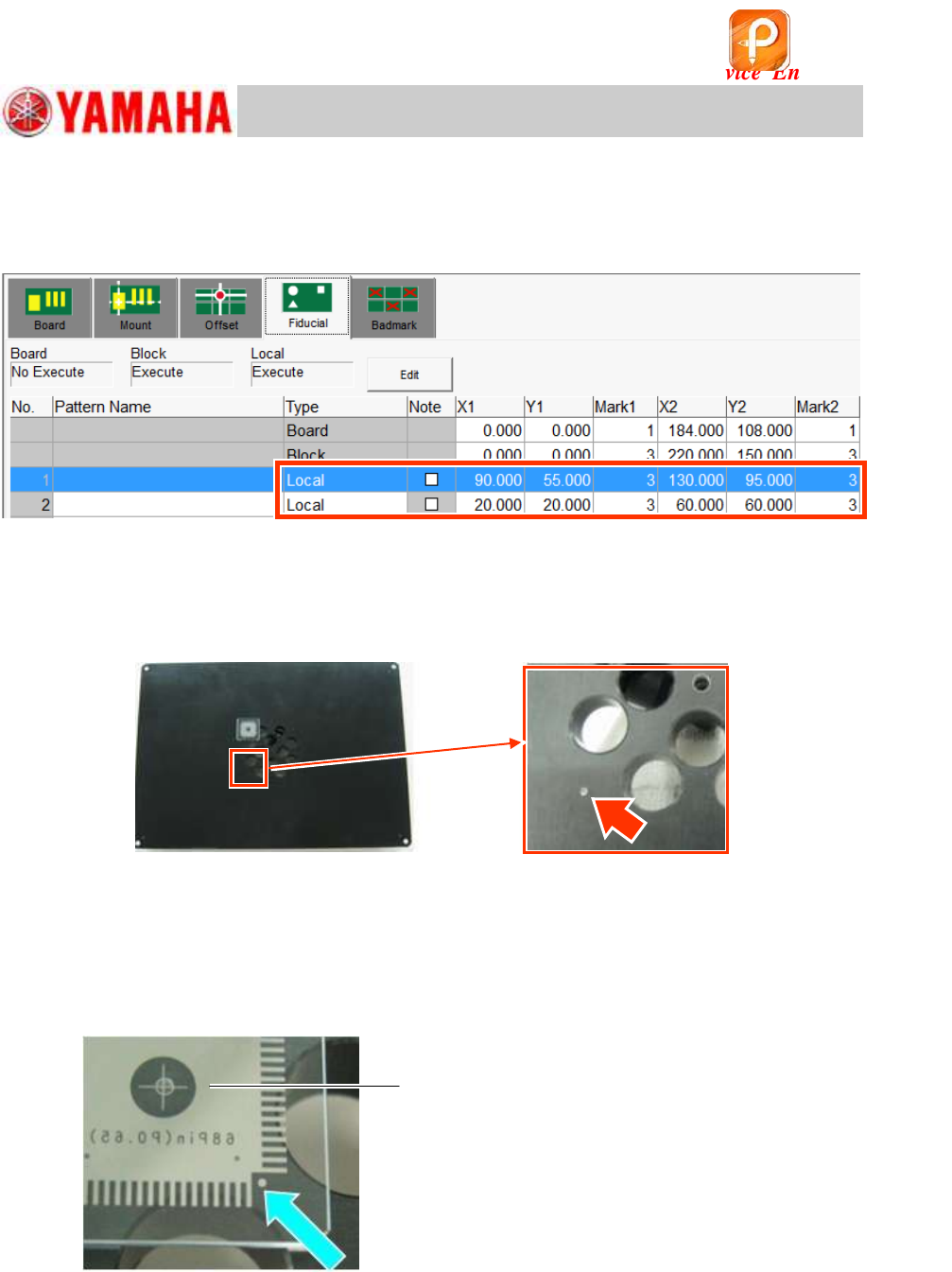 3. Check the XY coordinates of the Local fiducial and the mark number.