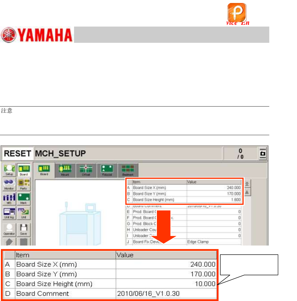 For Ser v ice E n gineer Service Information SI1610004E -000= YSM10_Proced ures for the adjustmen ts required after installing a machine 63/107 6.6.2 Change the “ Board Size Height ” to 10.0 mm Change the “Board Size Hei…