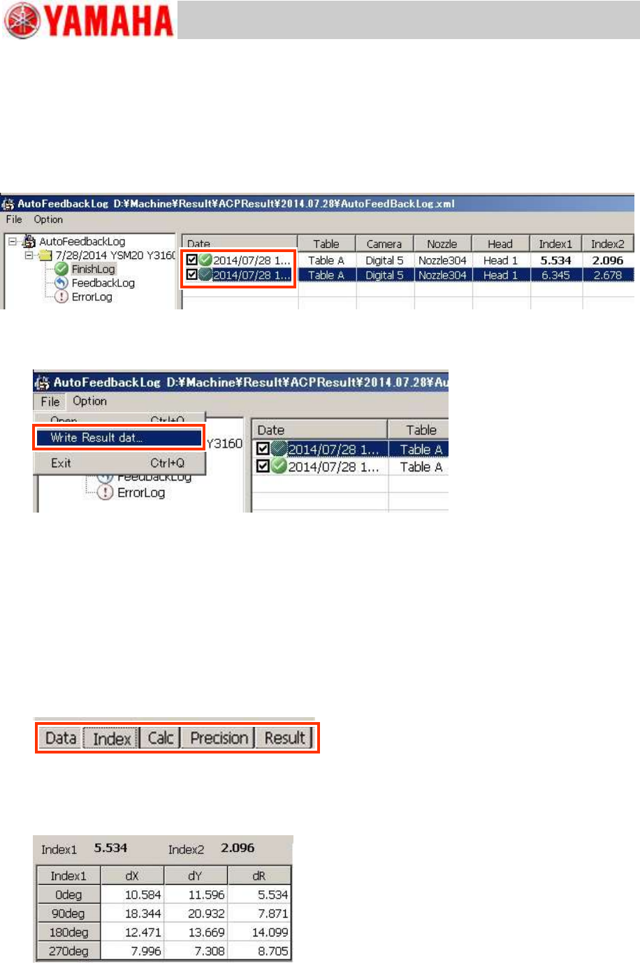 For Service Engineer Service Information SI1610004E - 000 = YSM10_Procedures for the adjustments required a fter installing a machine 72 / 107 3. Display the “Data” t ab on the “FinishLog ” window. Index 1, 2 of the fina…