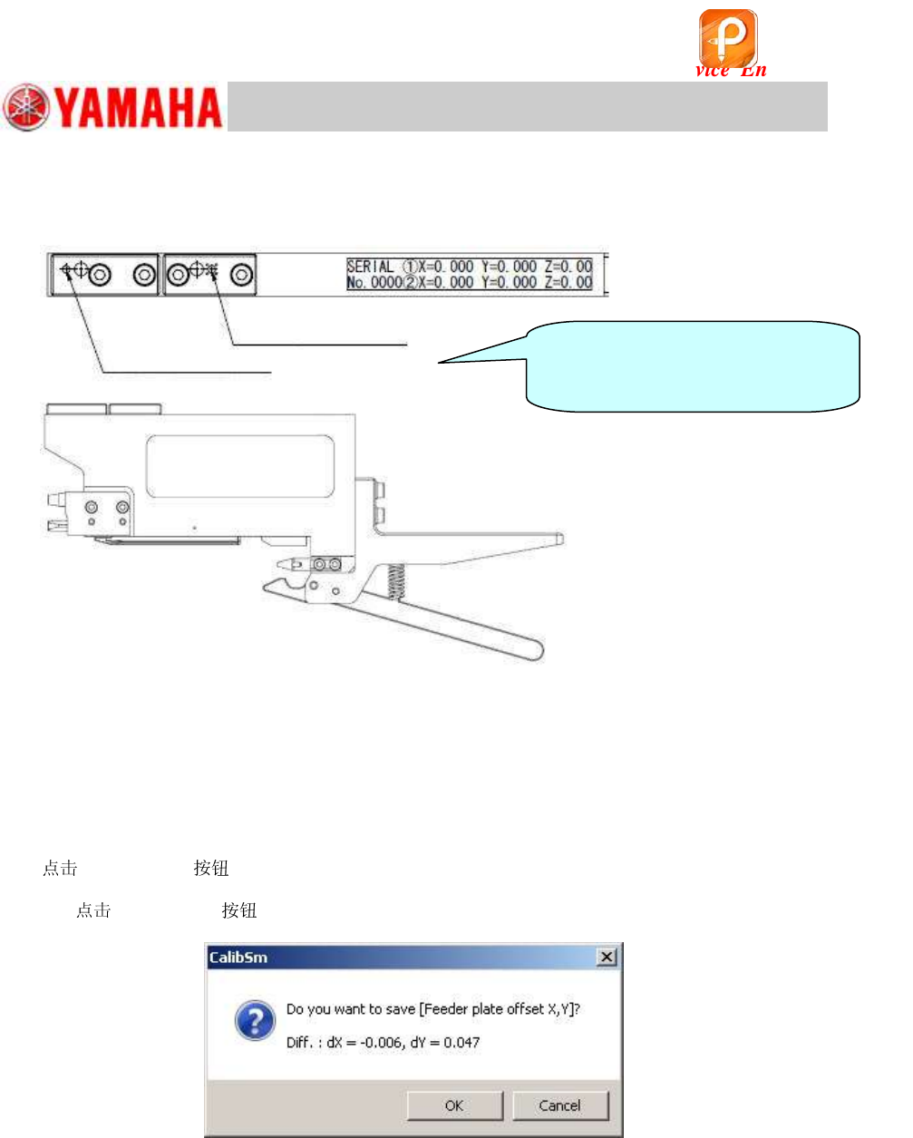 For Ser v ice E n gineer Service Information SI1610004E -000= YSM10_Proced ures for the adjustmen ts required after installing a machine 78/107 7.2.2 Feeder Pic kup positi on Z adjustme nt Measure the height of the datum…