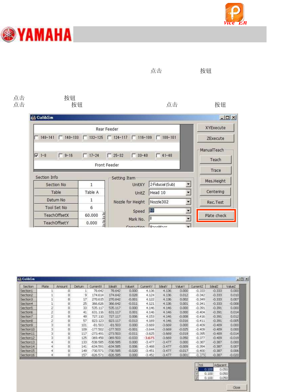 [005 FeederPos] on the CalibSm main menu and [Plate check] .