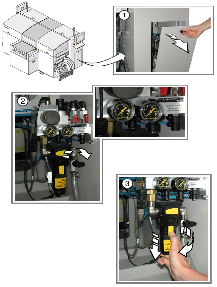 : As soon as both manometers read 0, switch the placement machine off at the main switch.
