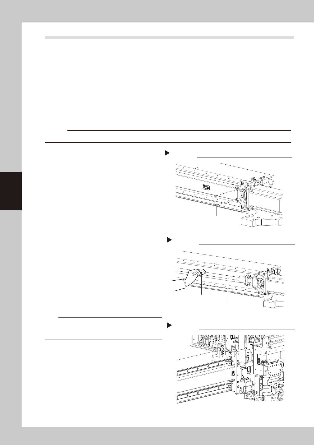 4-11 4 Maintenance 5. Monthly 5.1 Inspecting each axis Inspect the ball screws and the guides on each axis. Check the follo wing points. n NOTE A grease spattering prevention cover is attached along each axis. Remove the…