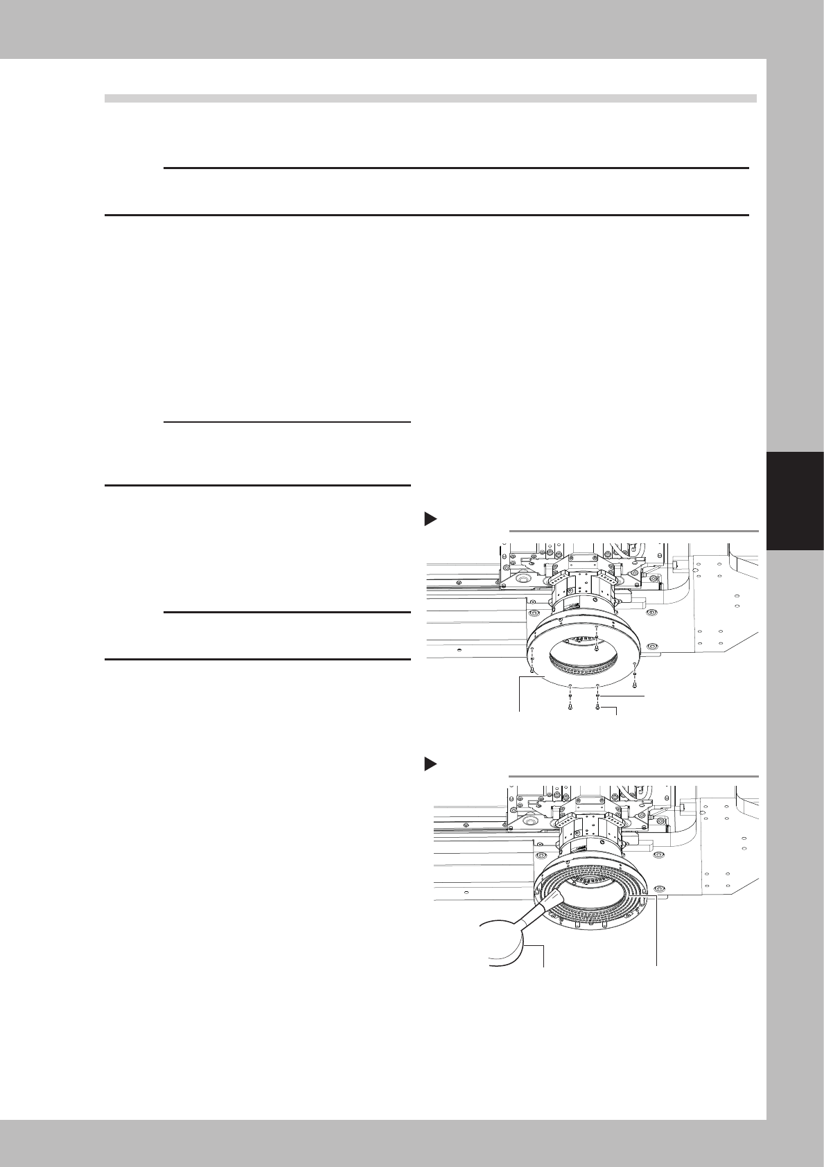 4-16 4 Maintenance 5.2.4 Cleaning and greasing the Y axes guides n Required tools • Lent-free cleaning wipe • Grease gun • Specified grease (NSL) • Protective glasses • Protective glo ves c CAUTION W ear protective glass…