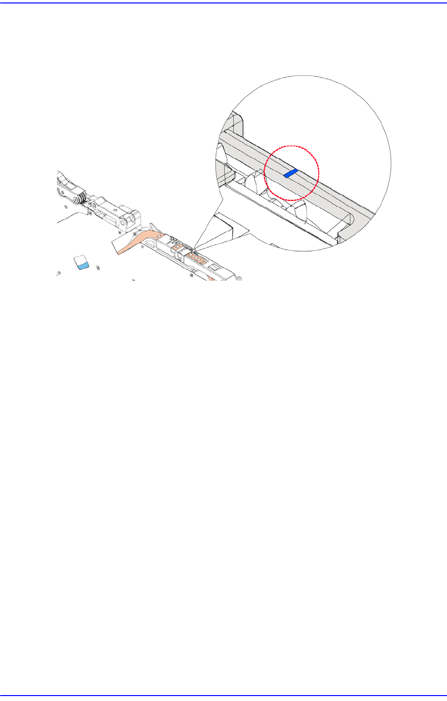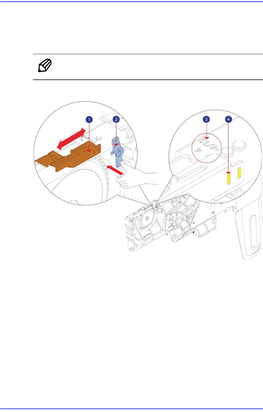 2) 把塑料料带插入排放手柄与排放齿轮之间的间隙。