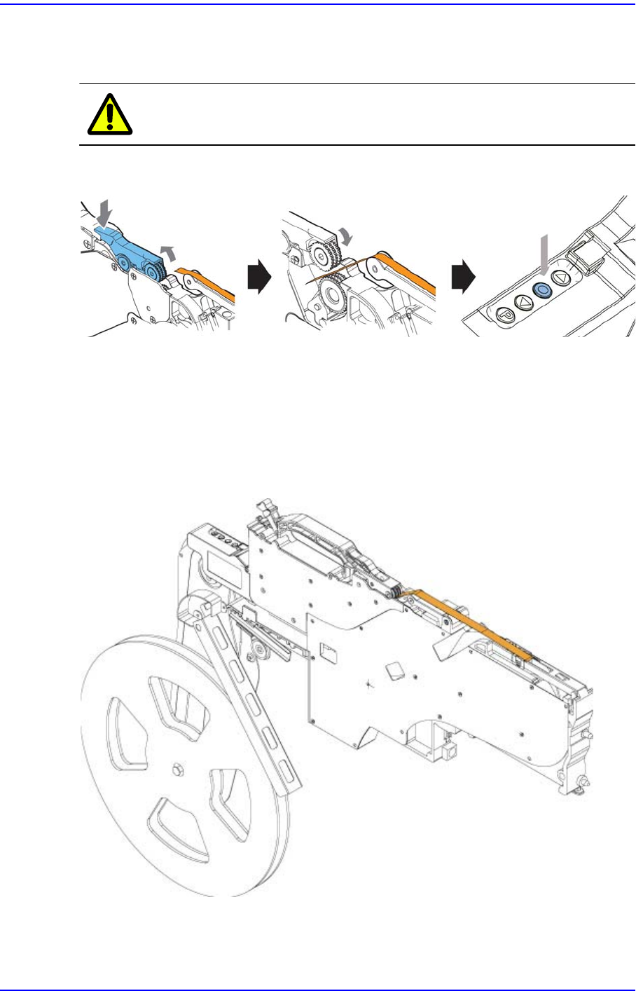 注 意 把塑料料带固定在排放齿轮时,请注意避免塑料料带纠缠。