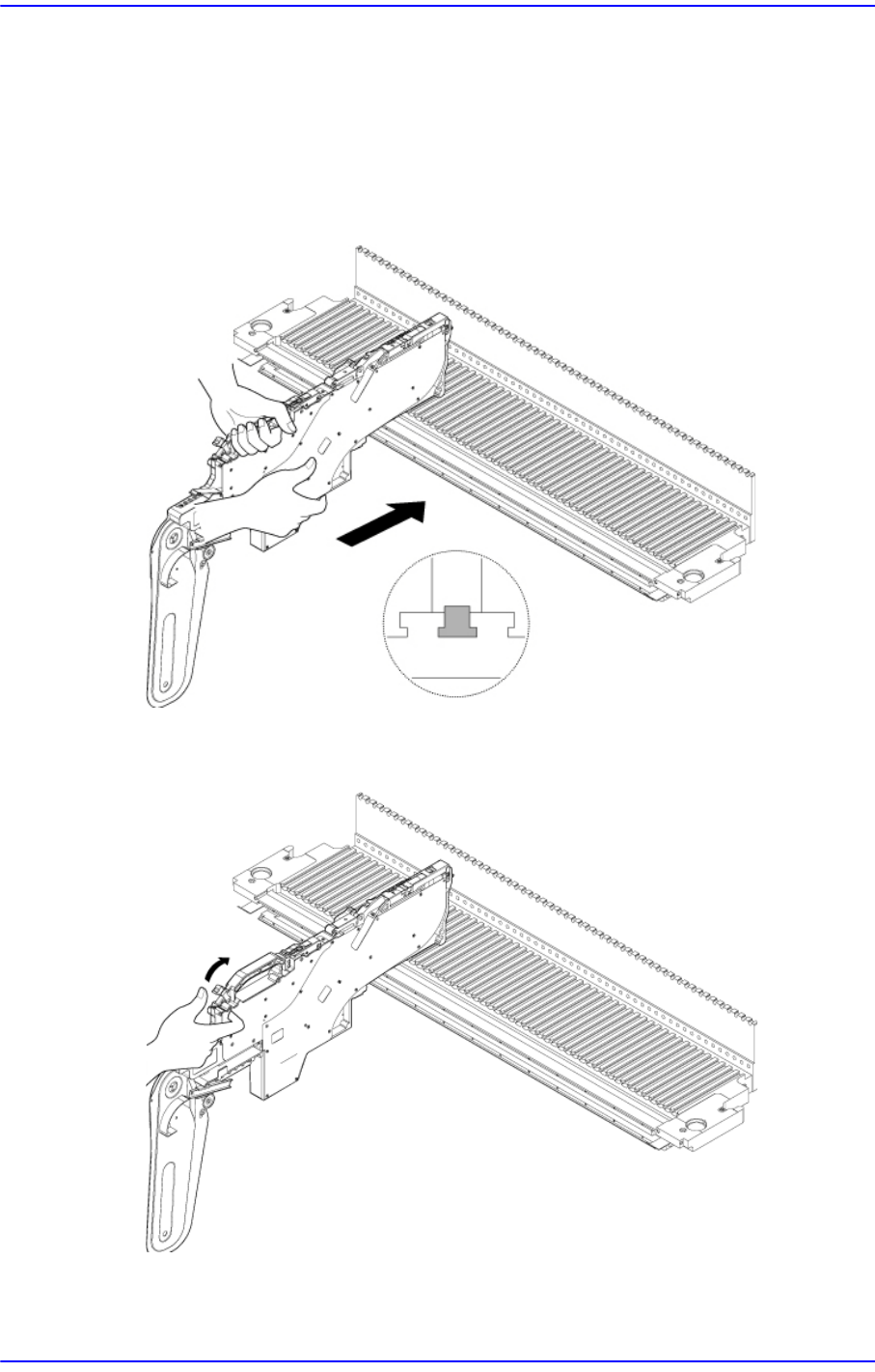 1) 如下图所示地握住带式供料器缓缓地推入带式供料器,直到带式供料器的安装
