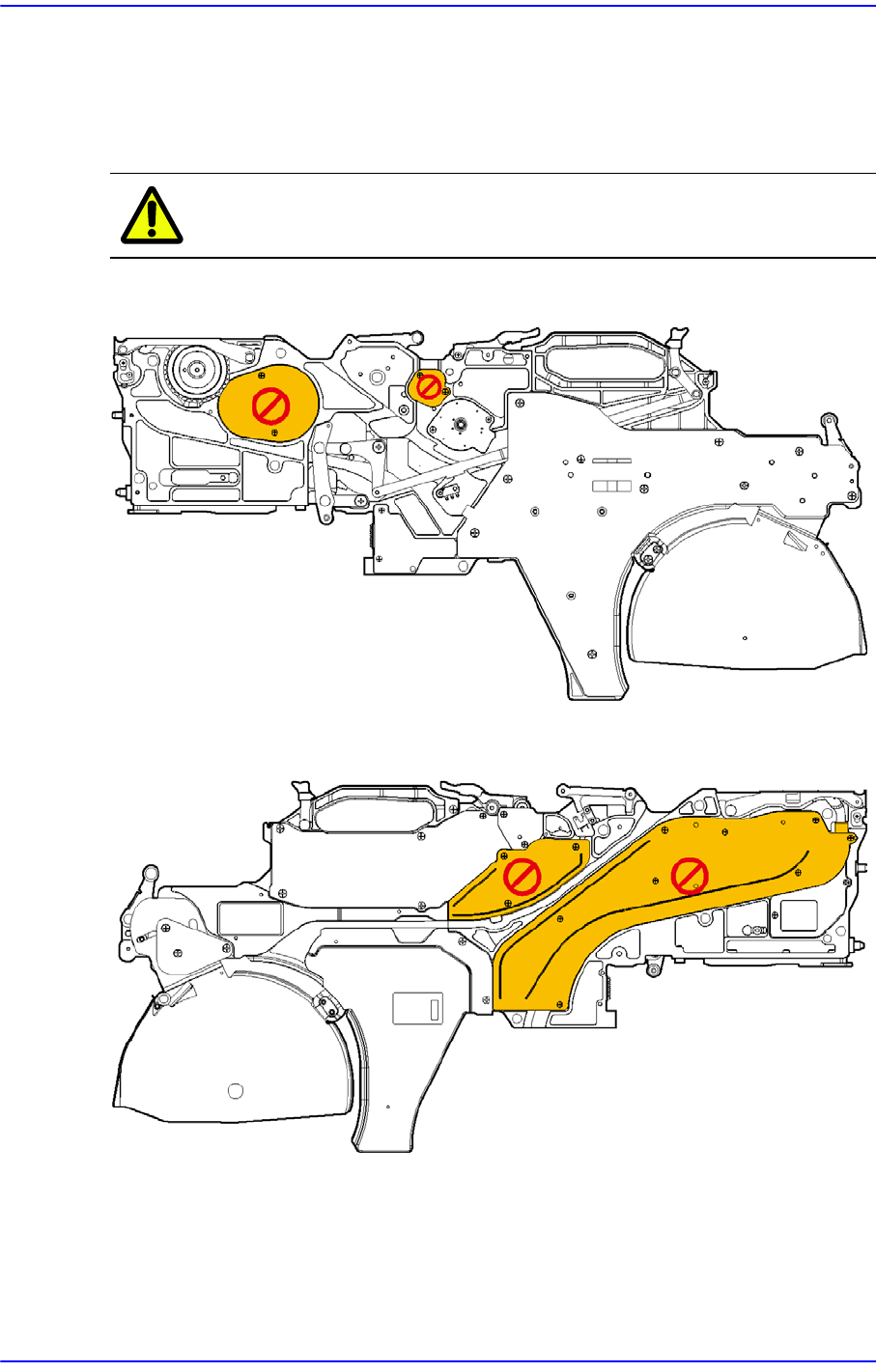 3-3 维修与维护 图 3.2 SME 12~88 mm 带式喂料器 带式供料器的位置销中的一个是 偏心销, 将其旋转时能让元件的吸取位置在元 件移 送方向 (Y 方向 ) 与垂直方 向 (X 方向 ) 变化 。 需 要调整元件吸取位置时, 请利用经过本 公司供应的主供料器所校正的校 准治具针对需要调整的供料器的 元件吸取位置准确 地测量 X 方向偏差, 然后调整供料器的偏差。 如下图所示, 解开供料器正面的偏心销固定 用紧定螺钉后, …