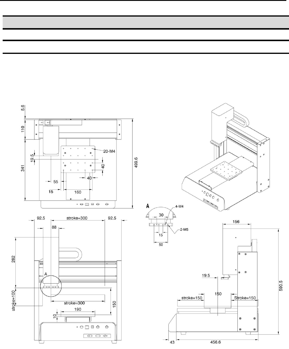 F4000N Series Operating Manual Section 7: Error M essages and Specifications Part # 562187N - 1 Rev . D Sep 2012 106 © 20 12 Fisnar Inc. 3. System Specificat ions F43 00 N F44 00 N F45 00 N Working Ar ea X / Y / Z (mm) 3…