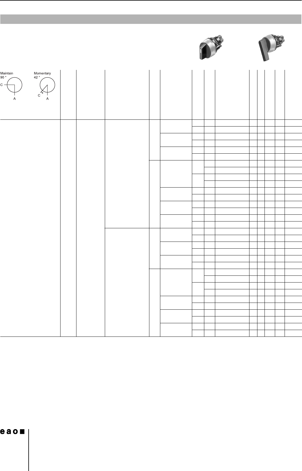 Switching action: MA = Maintained action, M = Momentary action
