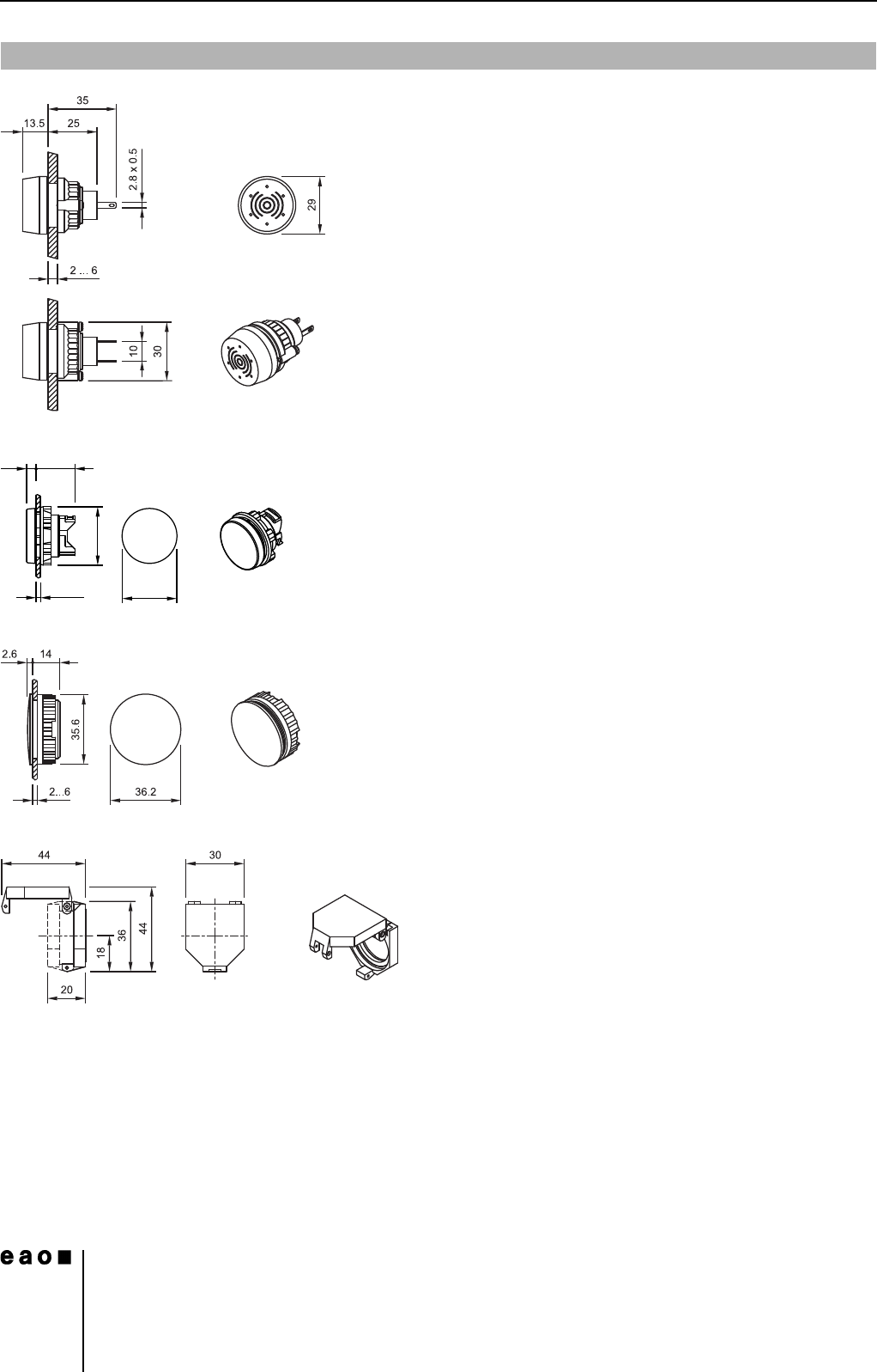 Keylock switch 2 positions page 11 | Selector switch 2 positions page 12 | Buzzer page 13