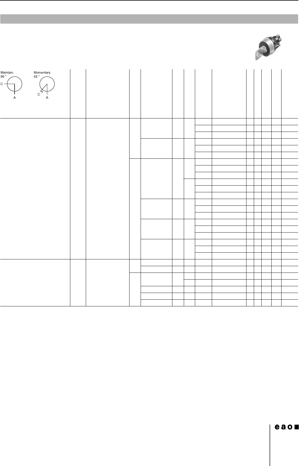 Switching action: MA = Maintained action, M = Momentary action