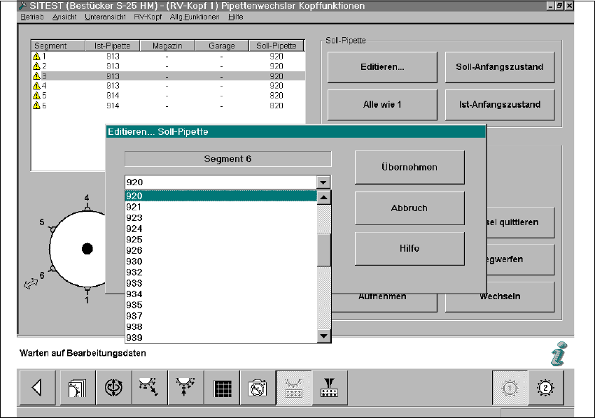 Abb. 1.13.2 SITEST: Pipettenwechsler-Kopffunktionen, Editieren...Soll-Pipette (Beispiel: RV6)
