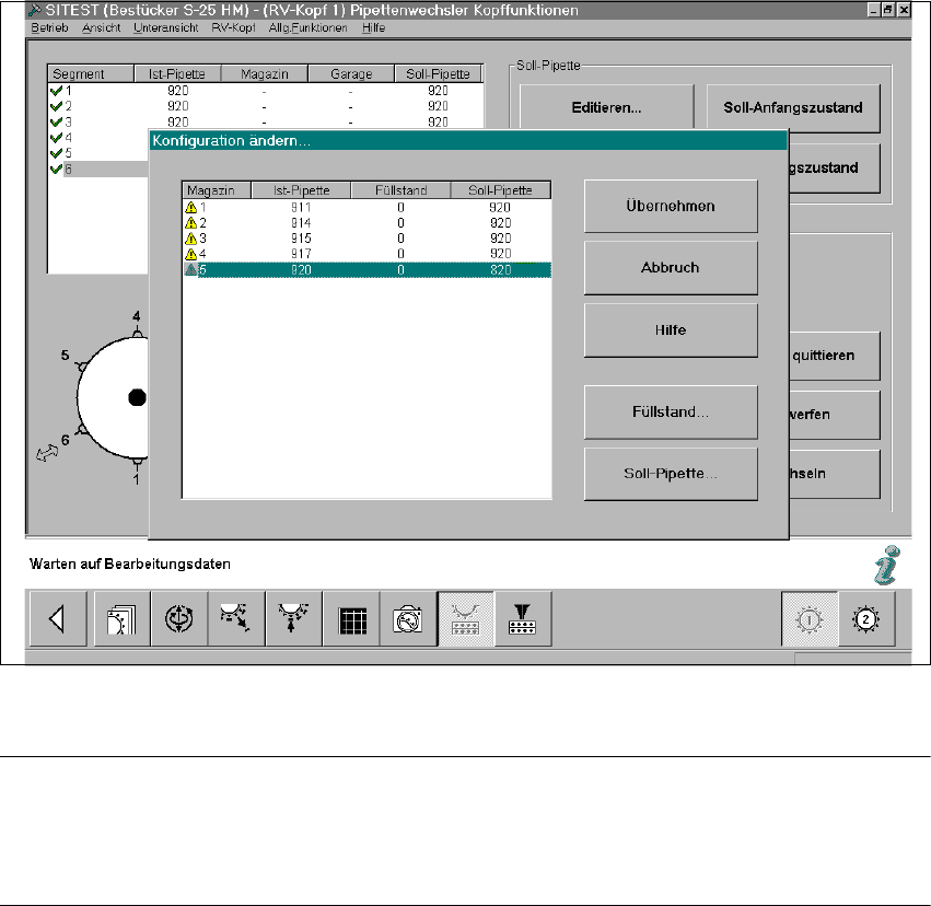Abb. 1.13.3 SITEST: Pipettenwechsler-Konfiguration ändern (Beispiel: RV6)