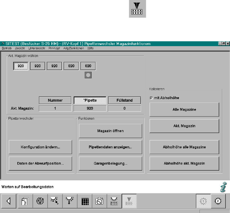 Ausgabe 07/01 1.13 SITEST: Pipettenwechsler RV6 Standard mit Pipetten belegen und kalibrieren