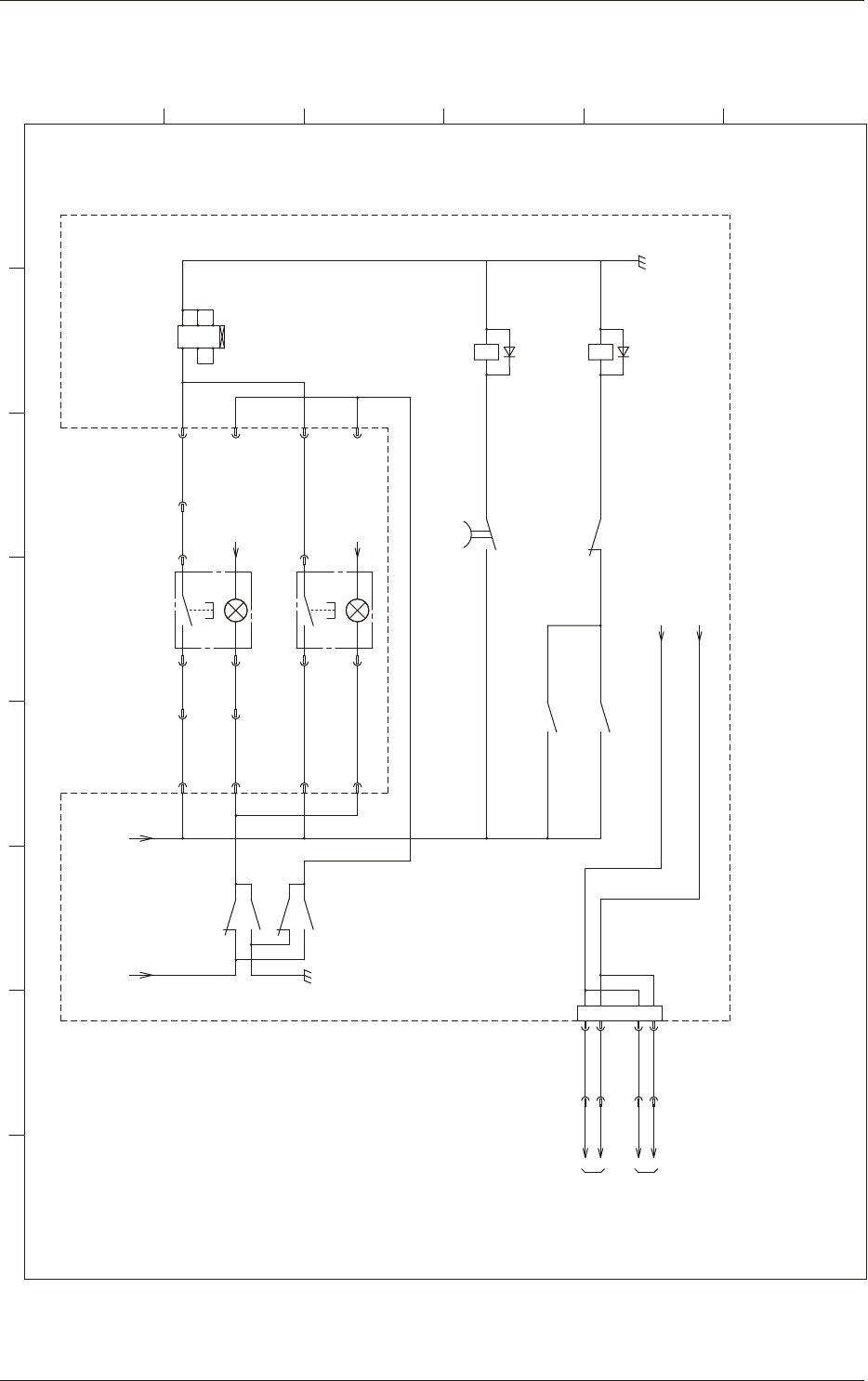 4-17 5OM-1750 1303-001-(31010WB---1005) 安全リレー回路 U U K1 K2 K4 K3 b a b a Control Circuit Timer OFF Delay K4 K3 K2 K1 54 44 34 24 14 A B T22 T21 PE T11 T12 T31 T32 13 23 33 43 53 A2 A1 62 61 T32 Y1 A1 T33 T31 T22 T12 T42 T…