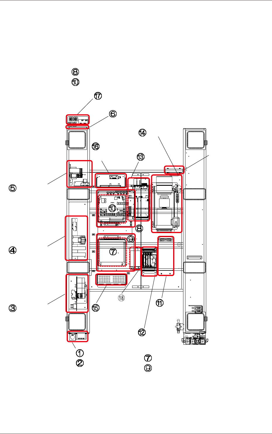 3-1 5OM-1750 1305-002 部品配置図 架台下レイアウト(全体) Q221 INPUT : 100-240VA 0.5 A 50/60Hz HWS15 - 5 /A OUTPUT : 5 V 3 A R 1 2 7 8 IC1 L E D 8 (赤) L E D 7 L E D 6 L E D 5 L E D 4 L E D 3 L E D 2 L E D 1 1 2 7 8 1 2 13 14 1 2 9 10 1 2…