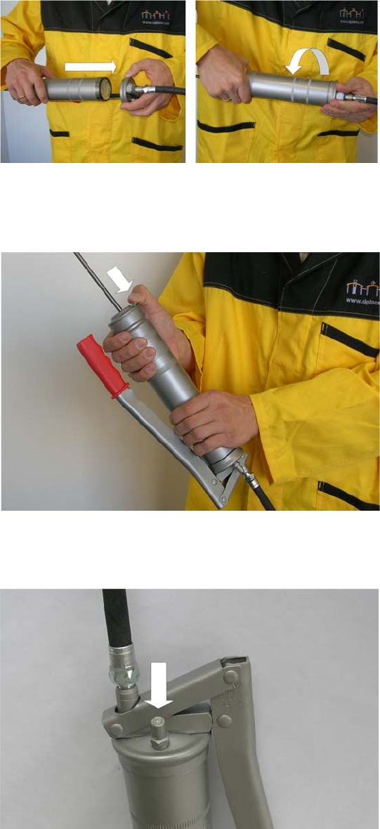 – Turn the filling tube clockwise to screw it into the gun head, as far as the end stop.