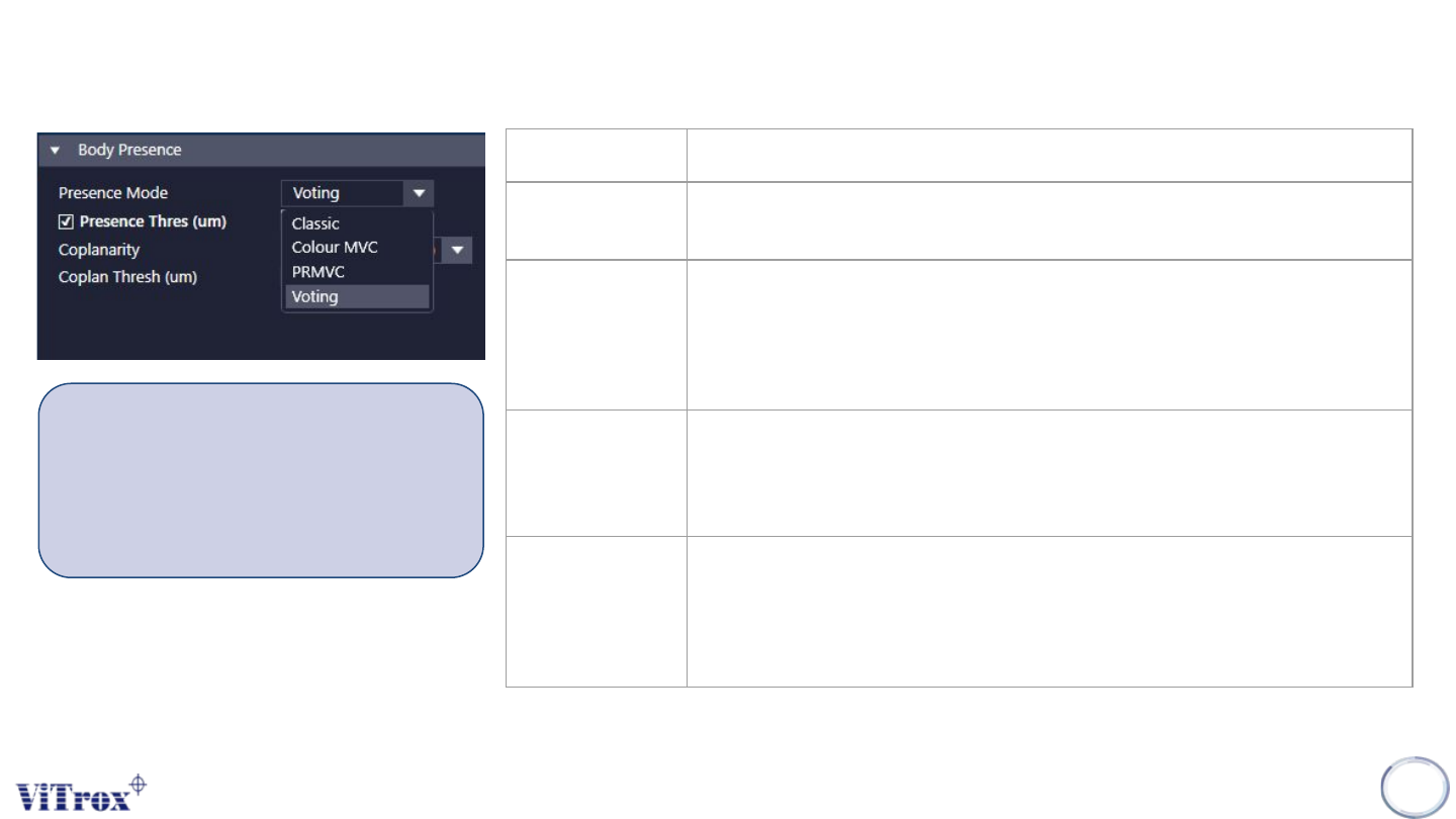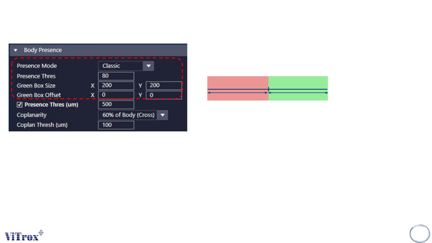 Copyright © ViT rox All Rights Reserved . S-type Algorithm - Body Mode (Classic) 1. Body Presence consists of 2D detection & 3D Detection. 2. 2D Classic Presence/Absence takes the average grey scale for the red lead …