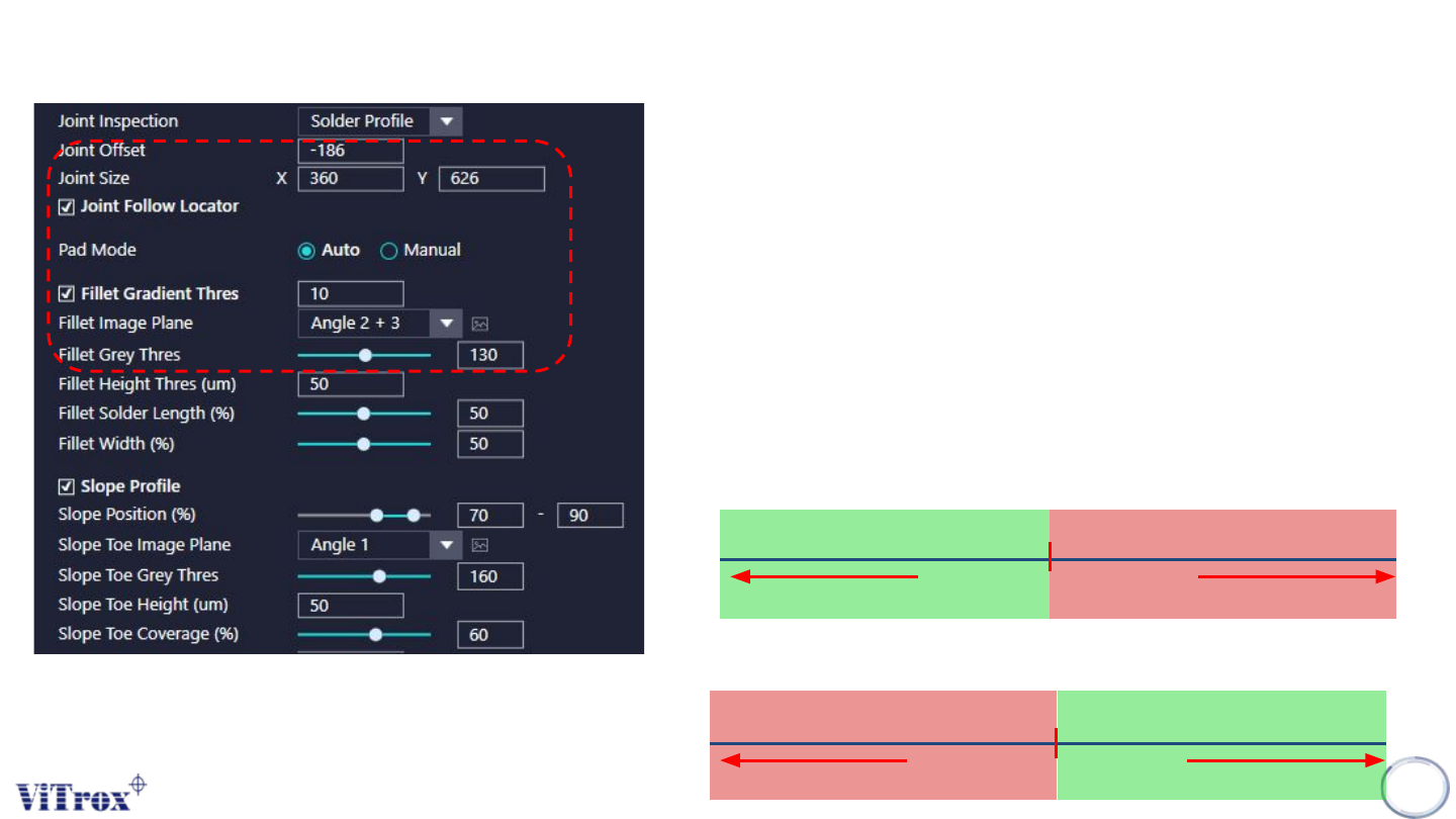 Copyright © ViT rox All Rights Reserved . S-type Algorithm - Joint (Solder Profile Inspection) 120 8. Fillet Solder Length (%) & Fillet Width (%) ● The overall pass criteria depends on: a. Solder Width (%) > Solde…