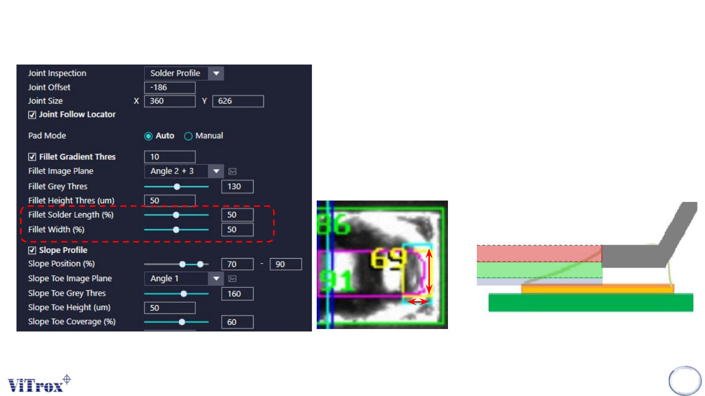 Copyright © ViT rox All Rights Reserved . S-type Algorithm - Joint (Solder Profile Inspection) 121 1. Identify Pad Area: ● Must have epad information. ● If no manually add the pad location. 2. Identify Solder T oe area: …