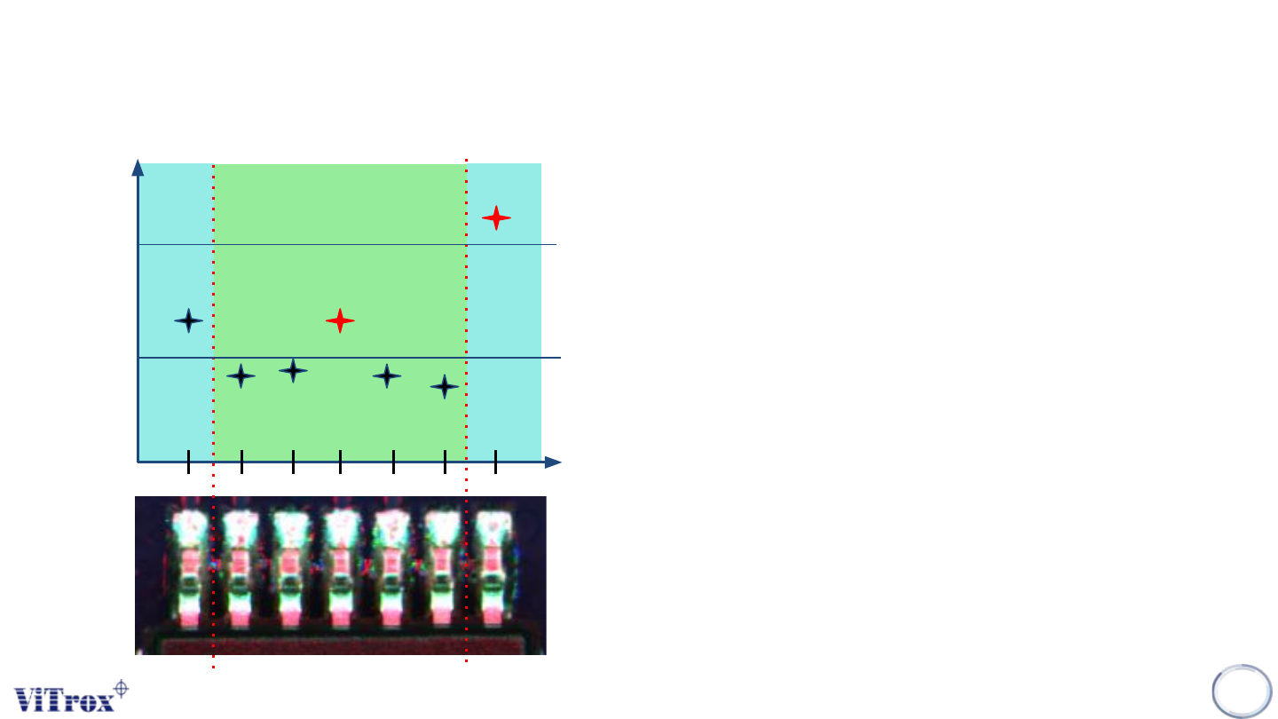 Copyright © ViT rox All Rights Reserved . Lead Ringer - Example for High Bad Thres Sense 148 1 2 3 4 5 6 7 End Leads End Leads Central Leads End Lead Thres Threshold Ringer T est V alue Lead Number Defect Defect Threshol…