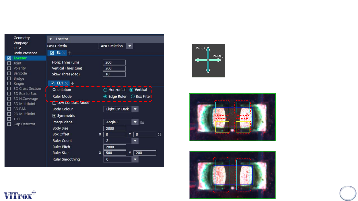 Copyright © ViT rox All Rights Reserved . U-type Locator - Edge Locator 165 Edge locator is used to locate the component body by using the edge of body . a. Pass Criteria ● AND Relation: All applied U-type algo must pass…