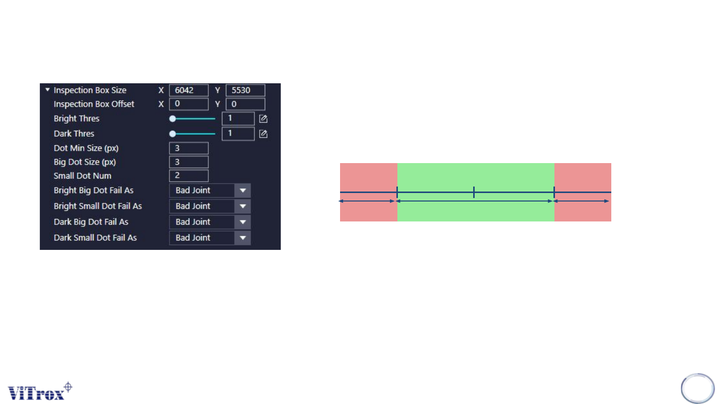 Copyright © ViT rox All Rights Reserved . U-type Joint- Diff Joint 181 Mode: Inspect Bo x 1. Box Size X & Box Size Y ● T o adjust the size for the auto partitioned joint box 2. Bright Percentage Thres & Dark Perc…