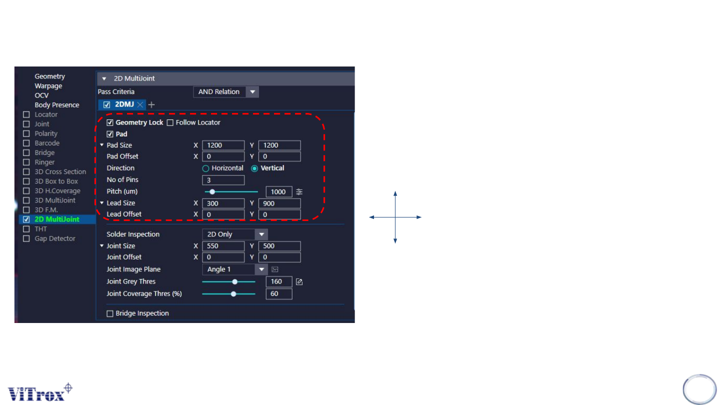 ● To adjust the Lead inspection box size & Lead inspection box offset.