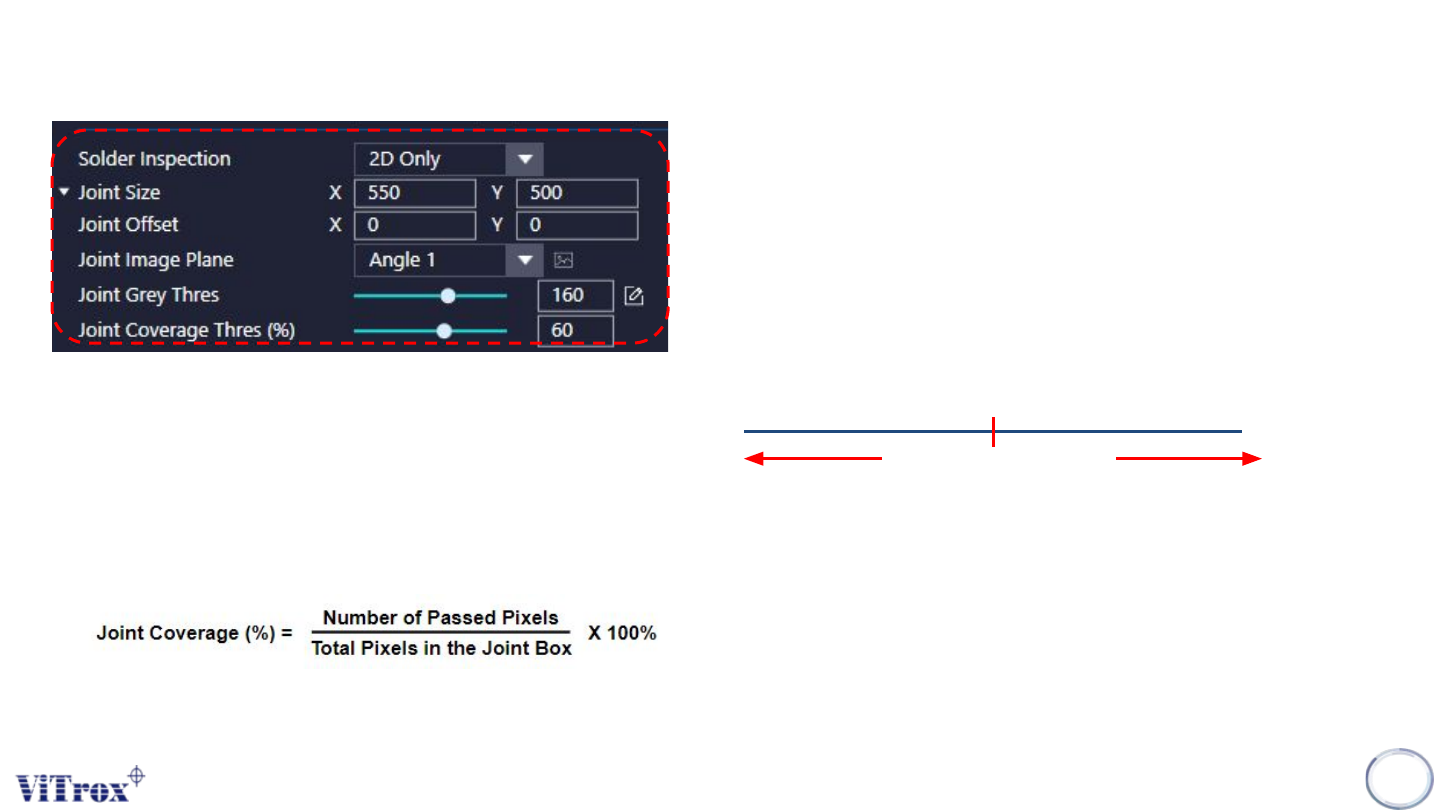 Copyright © ViT rox All Rights Reserved . a. Solder Inspection ● T o enable the box offset into symmetric direction only . b. Joint Size & Joint Offset ● T o adjust the size of Joint Inspection Box & offset of Jo…