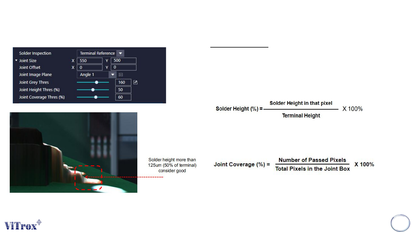 Copyright © ViT rox All Rights Reserved . 219 T erminal Reference ● Using 2D (Grayscale) and 3D(Height) ● OR Relation between 2D and 3D as pass criteria for single pixel ● Pass Criteria for single pixel: a. Measured Gray…