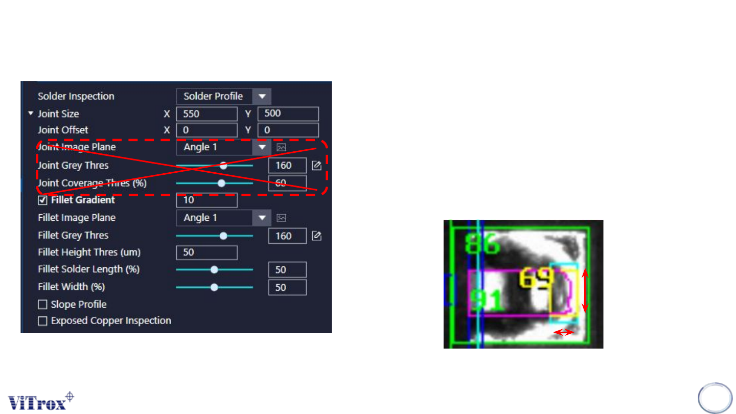 Copyright © ViT rox All Rights Reserved . U-type Algorithm - 3D Multijoint (Solder Profile Inspection) 220 Solder Profile a. Joint Size & Joint Offset ● T o adjust the sizes and the offset for joint inspection boxes …