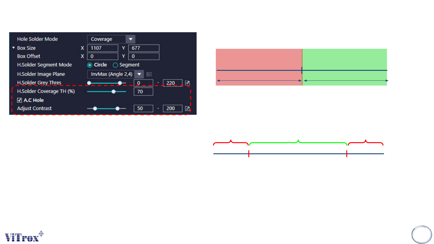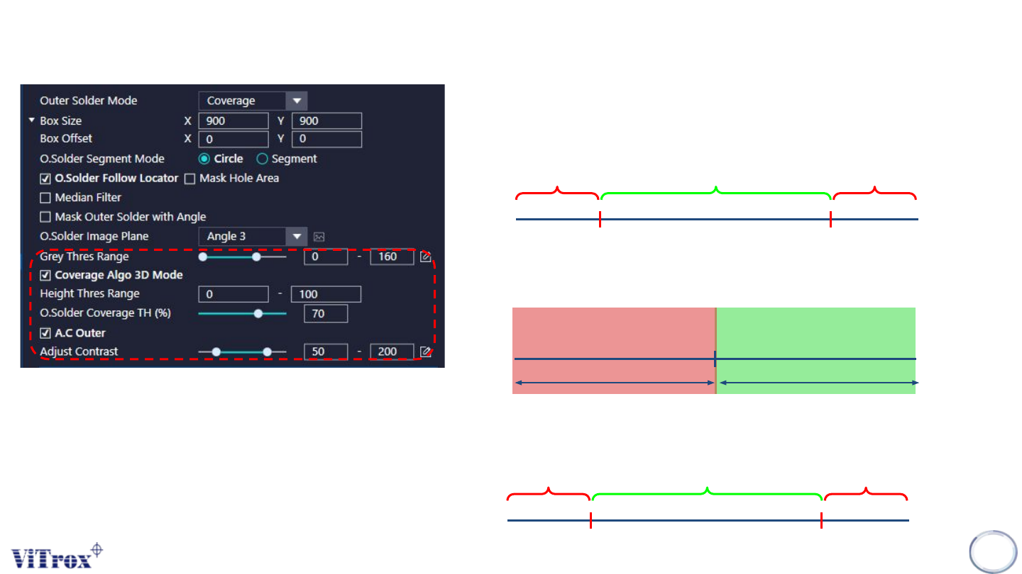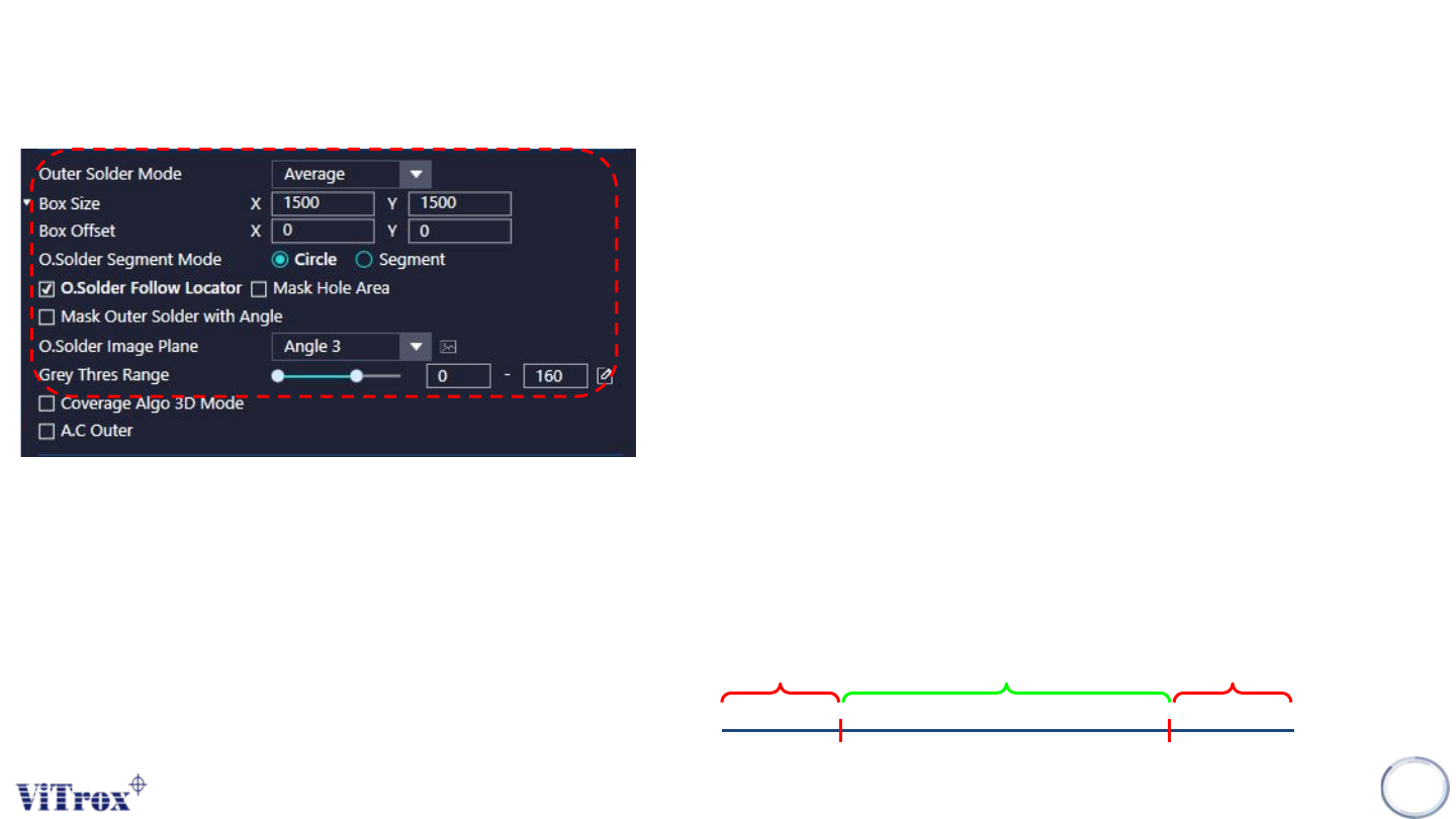 Copyright © ViT rox All Rights Reserved . U-type Algorithm - THT 236 a. Outer Solder Mode ● Average - ● Coverage - b. Box Size & Box Offset ● T o adjust the size and offset for Hole Solder inspection box. c. O. Solde…