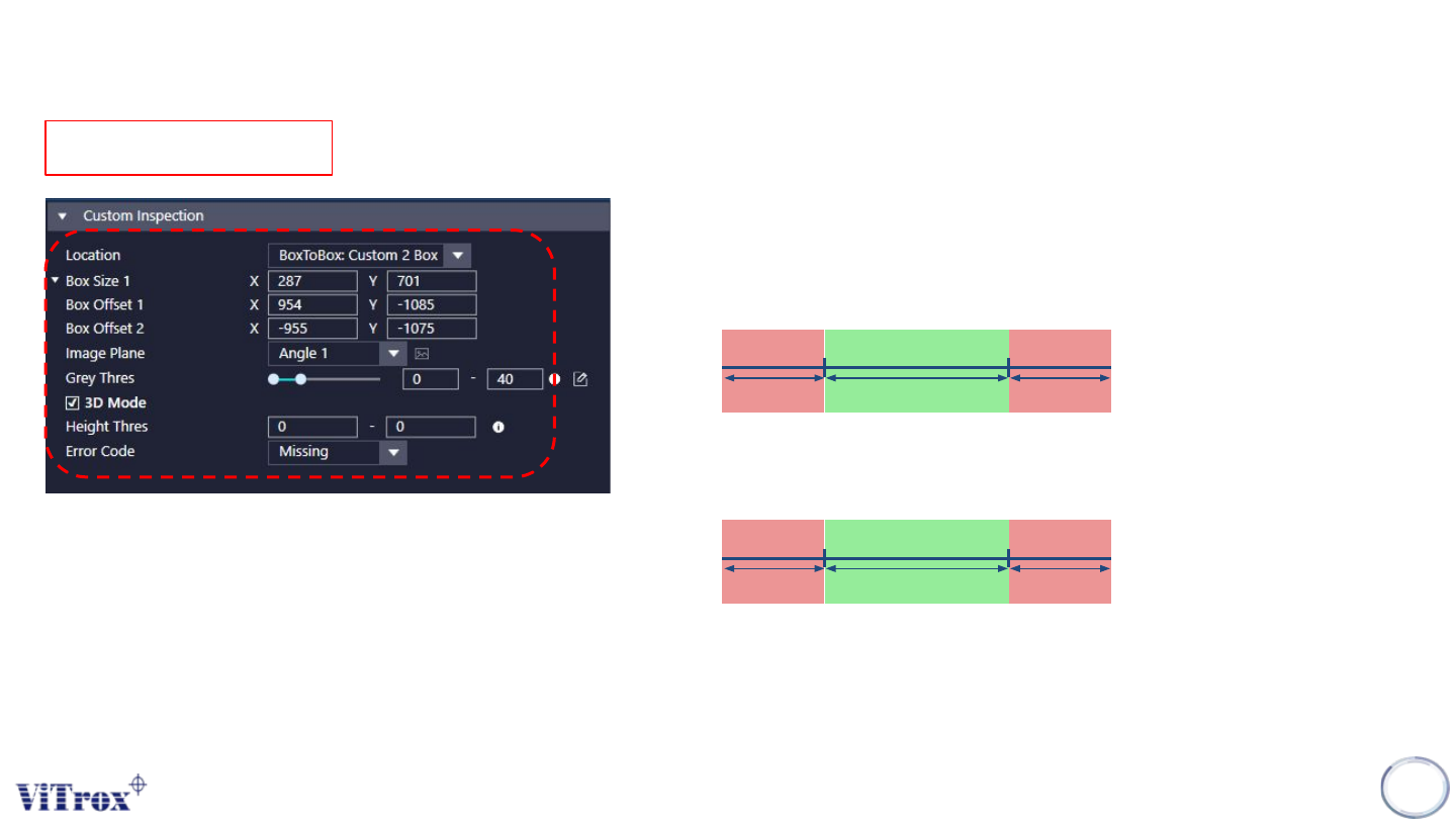 Copyright © ViT rox All Rights Reserved . B-type Algorithm - Custom Inspection 295 1. Box Size & Box Offset ● T o adjust the ROI sizes & ROI offset. 2. Image Plane ● These are the types of 2D Lighting. Select the…