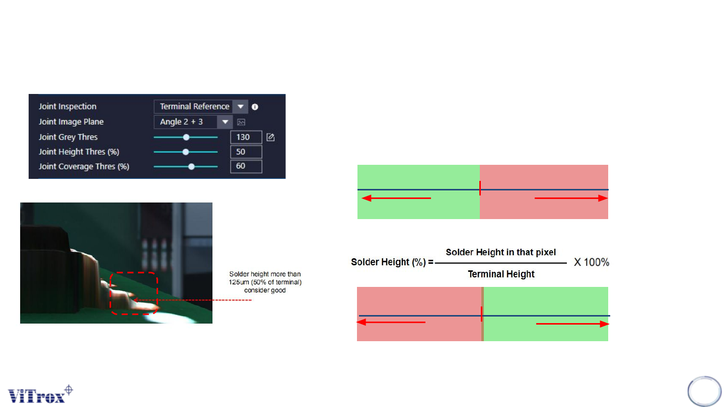 Copyright © ViT rox All Rights Reserved . B-type Algorithm - Joint (T erminal Reference) 70 4. Joint Coverage Thres ● T o set the percentage to pass the joint inspection. Pass Criteria for single pixel: a. Measured Grays…