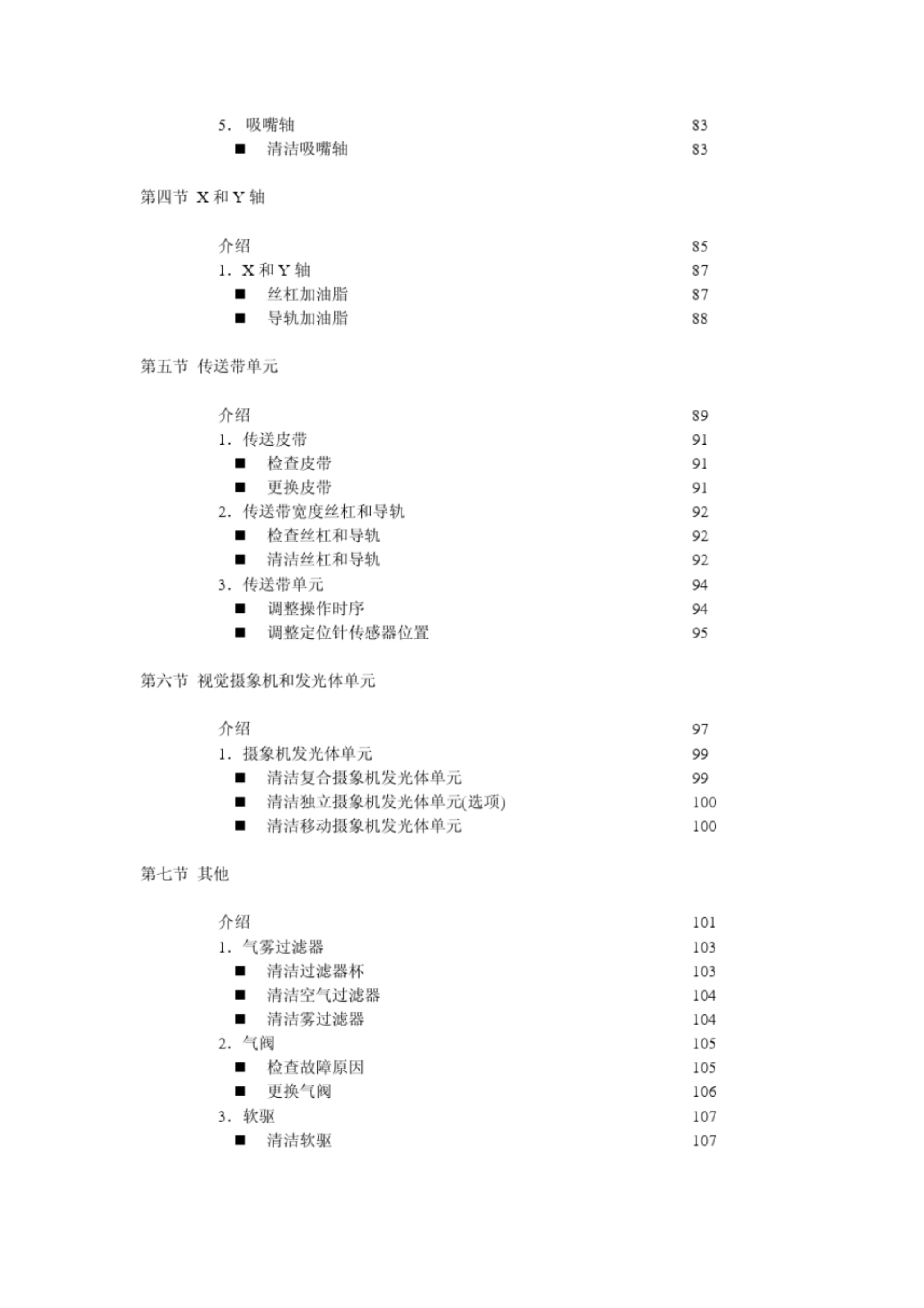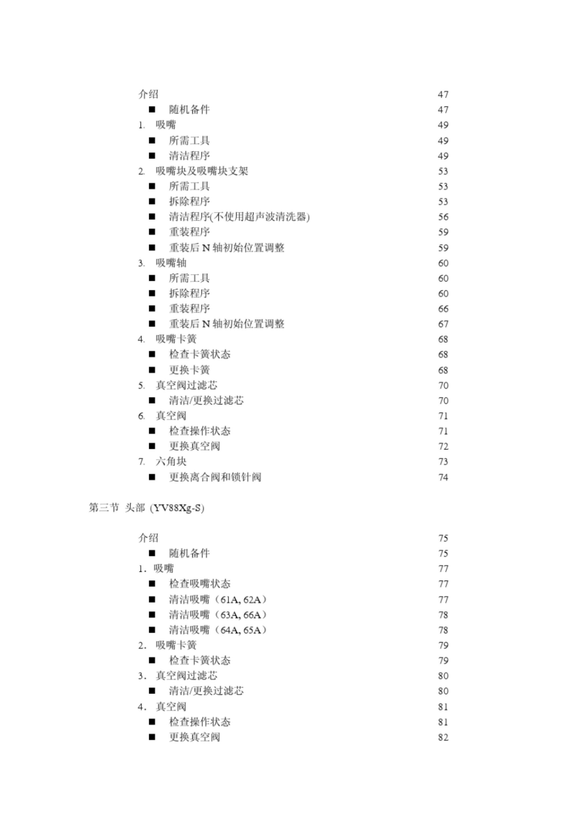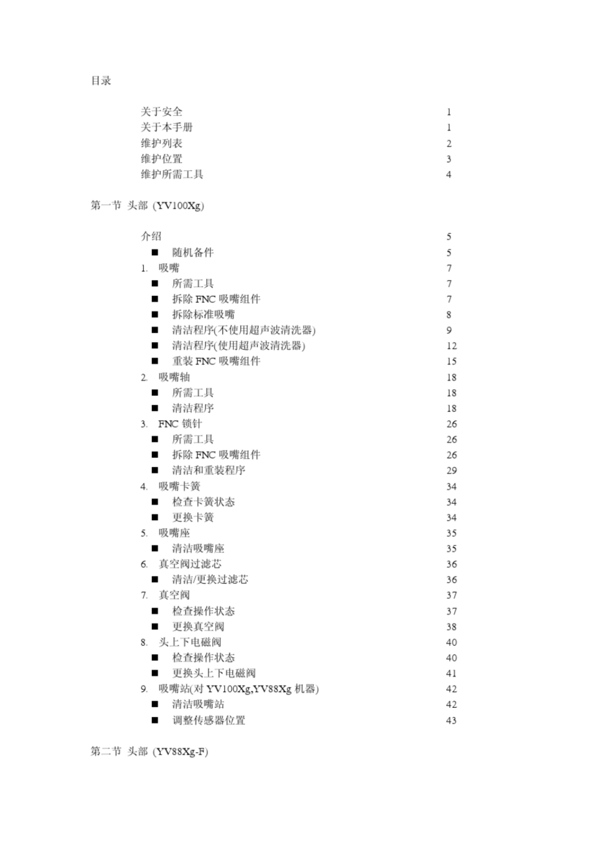关于安全 关于本手册 维护列表 维护位罝 维护所耑工 A 2 3 4 第一节头部 ( YVlOOXgj 介绍 5 ■ 随机缶件 1 . 吸 嘴 5 所耑工几 拆除 FNC 吸嘴组件 拆除知准吸嘴 淸 i 占程序 ( 不使川超声波淸洗器 j 清沽程序 ( 使 m 超卢波清冼器 j iR 装 FNC 吸嘴组件 S 9 12 15 2 吸 嘴 轴 1 S ■ 所耑工只 ■ 淸沽程序 3 , FNC 锁计 ■ 所耑 l : W ■ 拆除 FNC…