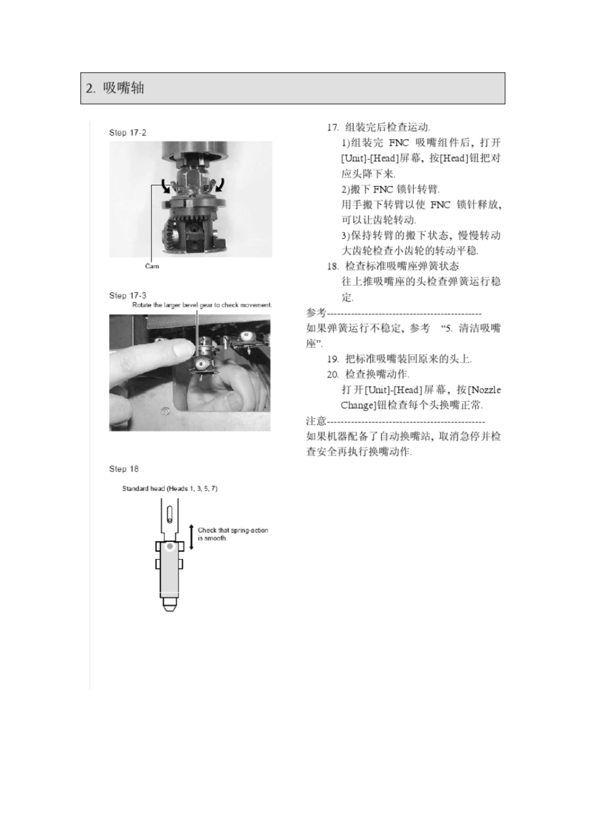 关于安全 关于本手册 维护列表 维护位罝 维护所耑工 A 2 3 4 第一节头部 ( YVlOOXgj 介绍 5 ■ 随机缶件 1 . 吸 嘴 5 所耑工几 拆除 FNC 吸嘴组件 拆除知准吸嘴 淸 i 占程序 ( 不使川超声波淸洗器 j 清沽程序 ( 使 m 超卢波清冼器 j iR 装 FNC 吸嘴组件 S 9 12 15 2 吸 嘴 轴 1 S ■ 所耑工只 ■ 淸沽程序 3 , FNC 锁计 ■ 所耑 l : W ■ 拆除 FNC…