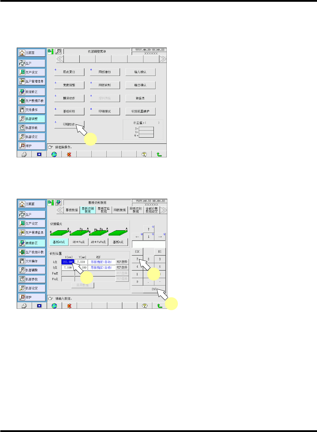 SP18P-L 操作手册 1.2 彩色接触面板 Page 1-5 1.2.3 开关的种类与操作方法 轻按画面上显示的开关,即可进行大部分的运转操作。 选择开关 1. 用手指按下要选择的项目。 • 将显示所选项目的画面。 • 主菜单的图标也变为选择开关。 输入开关 1. 指定数据输入项目。 ( 有多个输入项目时 ) • 所指定的项目将会变成反转显示。 2. 用数字键输入数值。 • 按错时,请按 [BS] 进行修改。 • 所输入的数…
