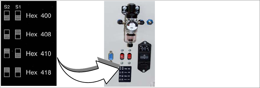 (6) Etikett mit Darstellung der Schalter S1 und S2 zur CAN-Bus-Adressierung