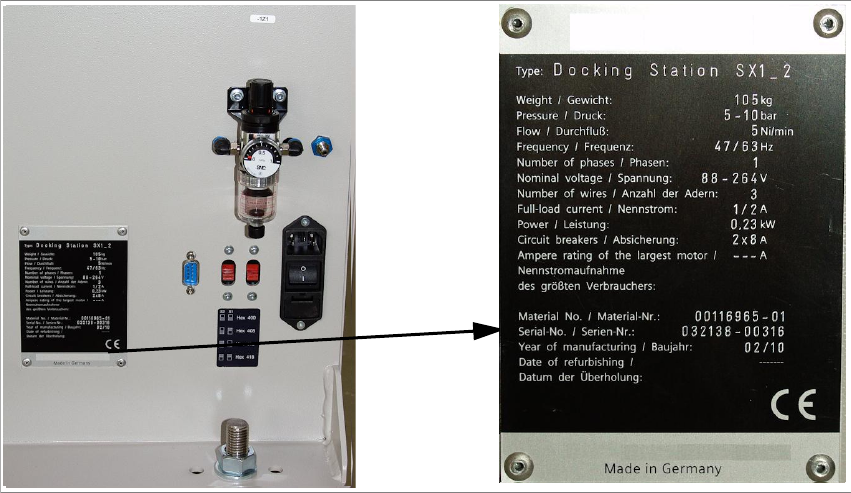 Die Seriennummer für die Andockstation für BE-Wagen SIPLACE SX ist an folgender Stelle zu