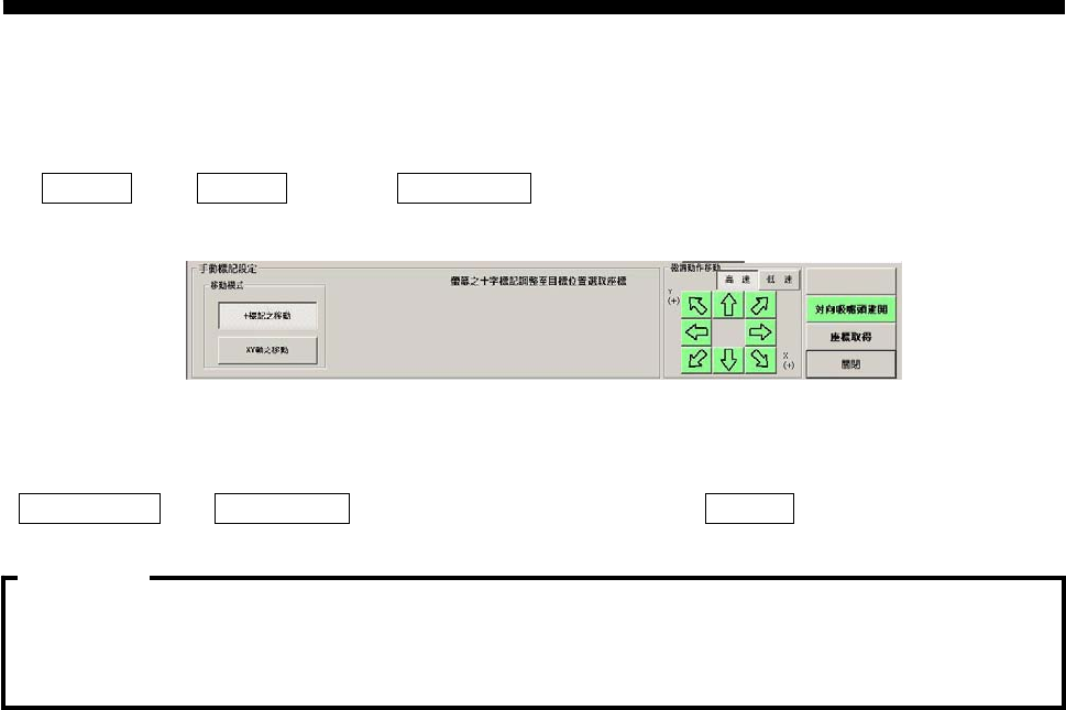 X Y 轴的移动以及 + 标记的移动,在定位标记位置移动十字标记, 用坐标取得键输入定位标记位置的坐标。