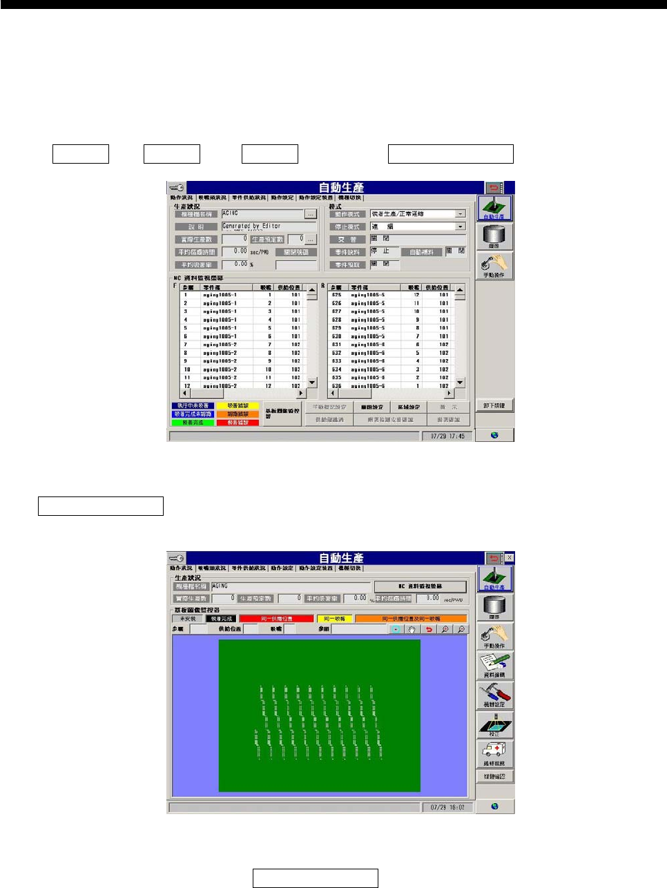 为显示基板图像, 在自动生产菜单的动作状况画面中, 点击显示基板图像监示器。