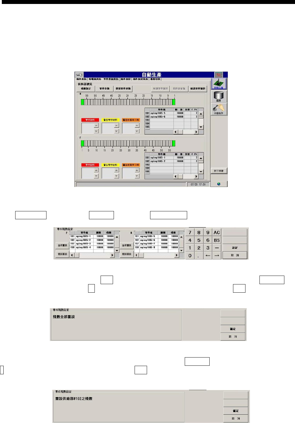 ( 自动生产) 画面 →( 零件供给状况) 标签,会出现以下的画面。