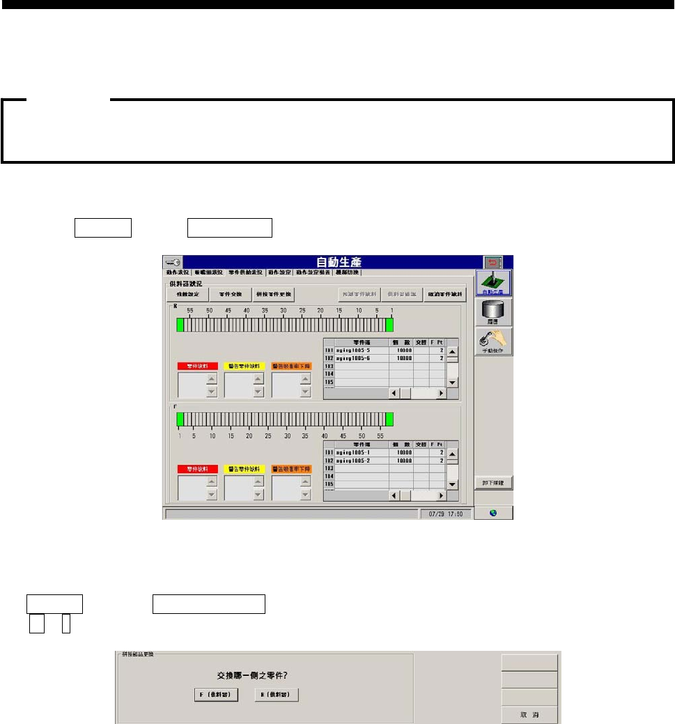 依顺序点击 自动生产 画面→ 零件供给状况 标签,会出现以下的画面。