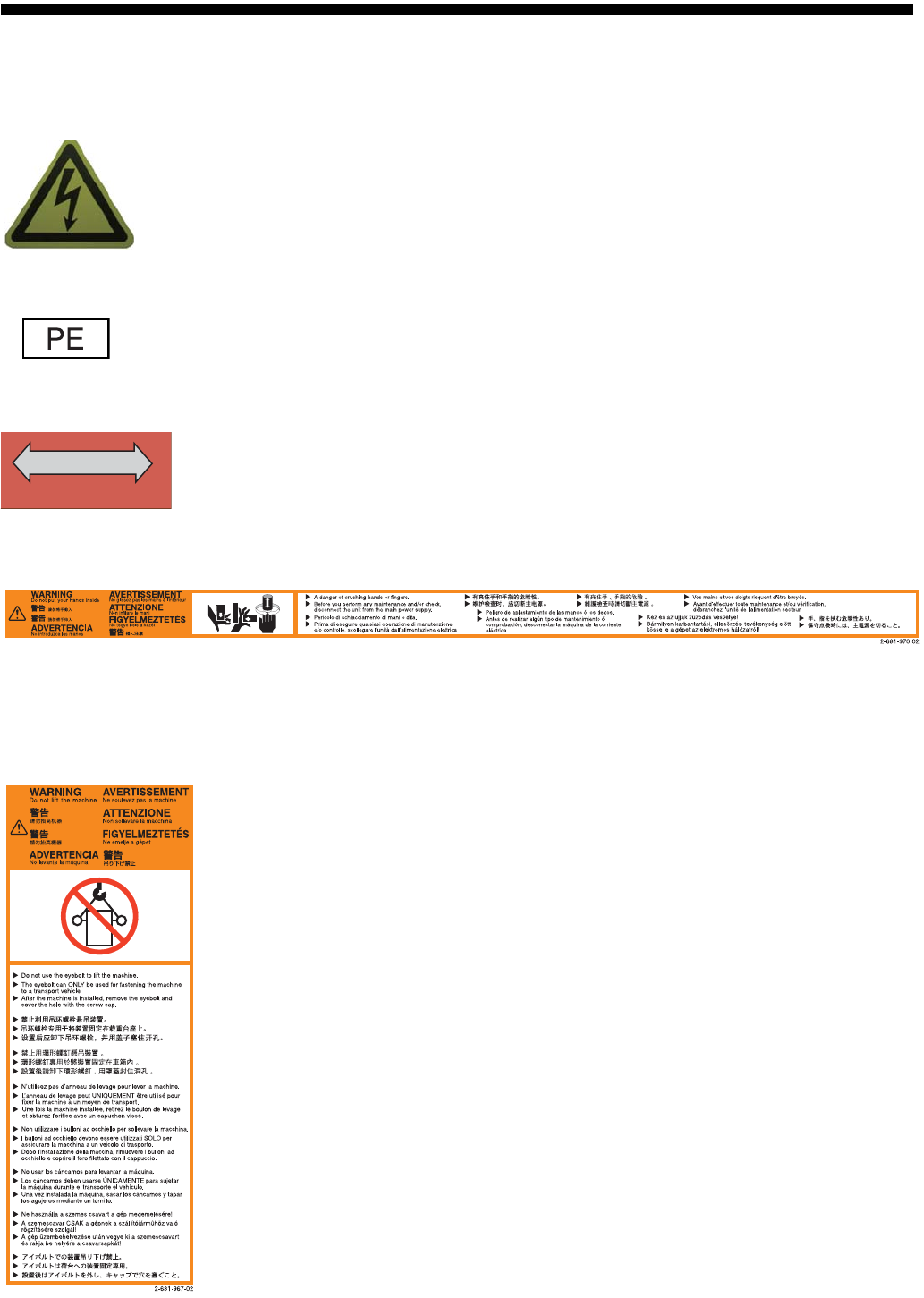 本机器所贴警告显示标签的种类和意思如下。请在理解了各种记号意思基础上,给予充分注意,进