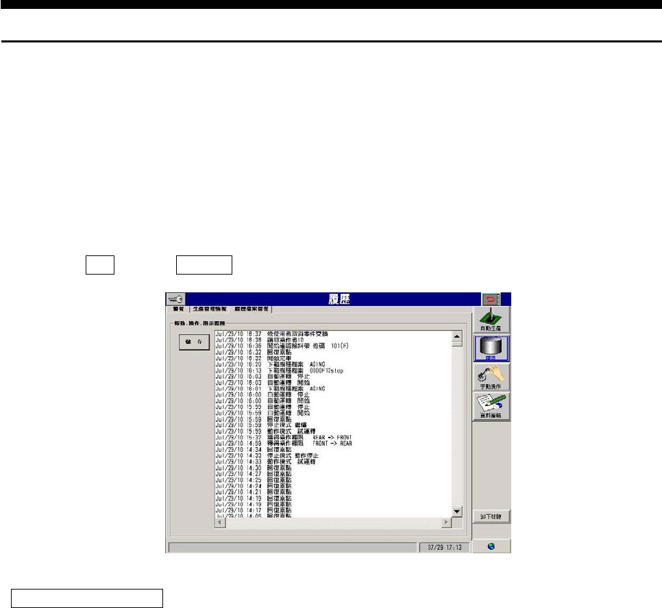 生产过程中, 在机器上可阅览发生的动作日志。动作日志记录的内容乃以自动生产中的操作为对象。